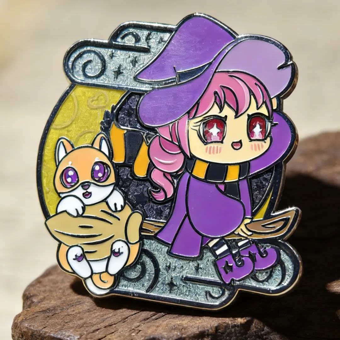 Hard enamel is another enamel process. The metal lines and enamel color areas are polished flat, creating a smooth surface with a refined, high-quality look. Because of its clean and premium finish, hard enamel pins are often preferred for collectible designs.